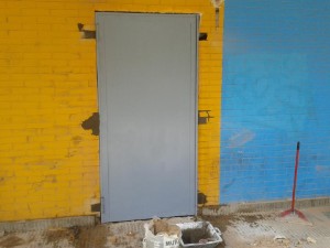 Obertura de 4 sortides d'emergència al Pavelló Polliesportiu d'Alfarràs [ set. 2012 ]